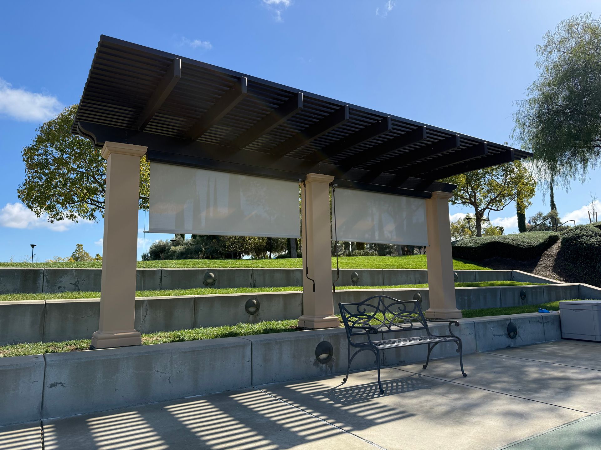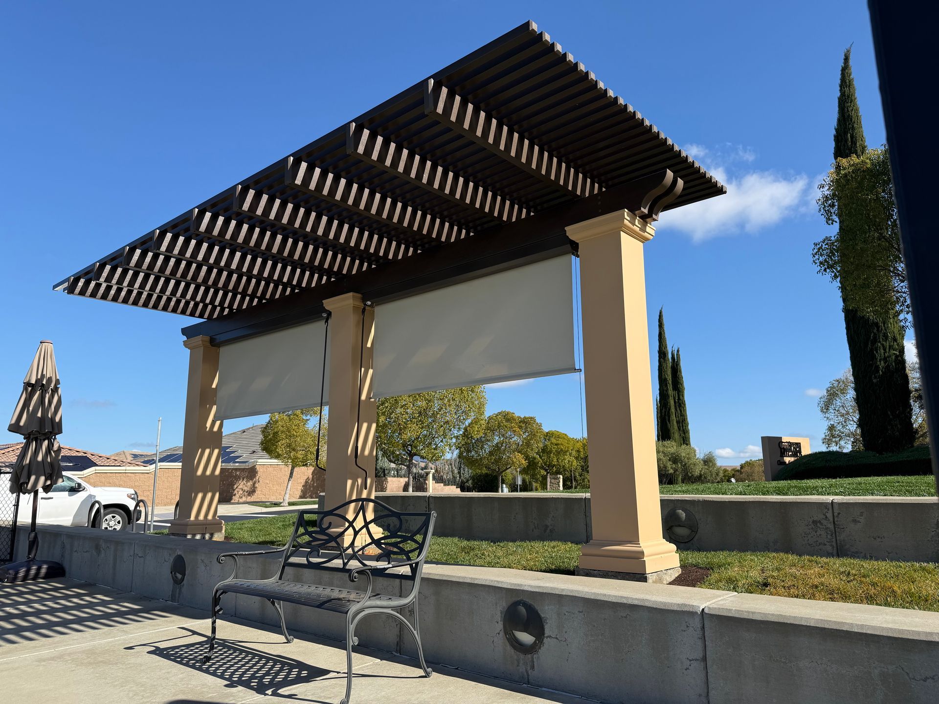 For maximum durability, many local homeowners prefer aluminum pergolas, which resist rust, pests, and harsh weather. Our team can help you select the ideal material and finish to suit your property and climate.